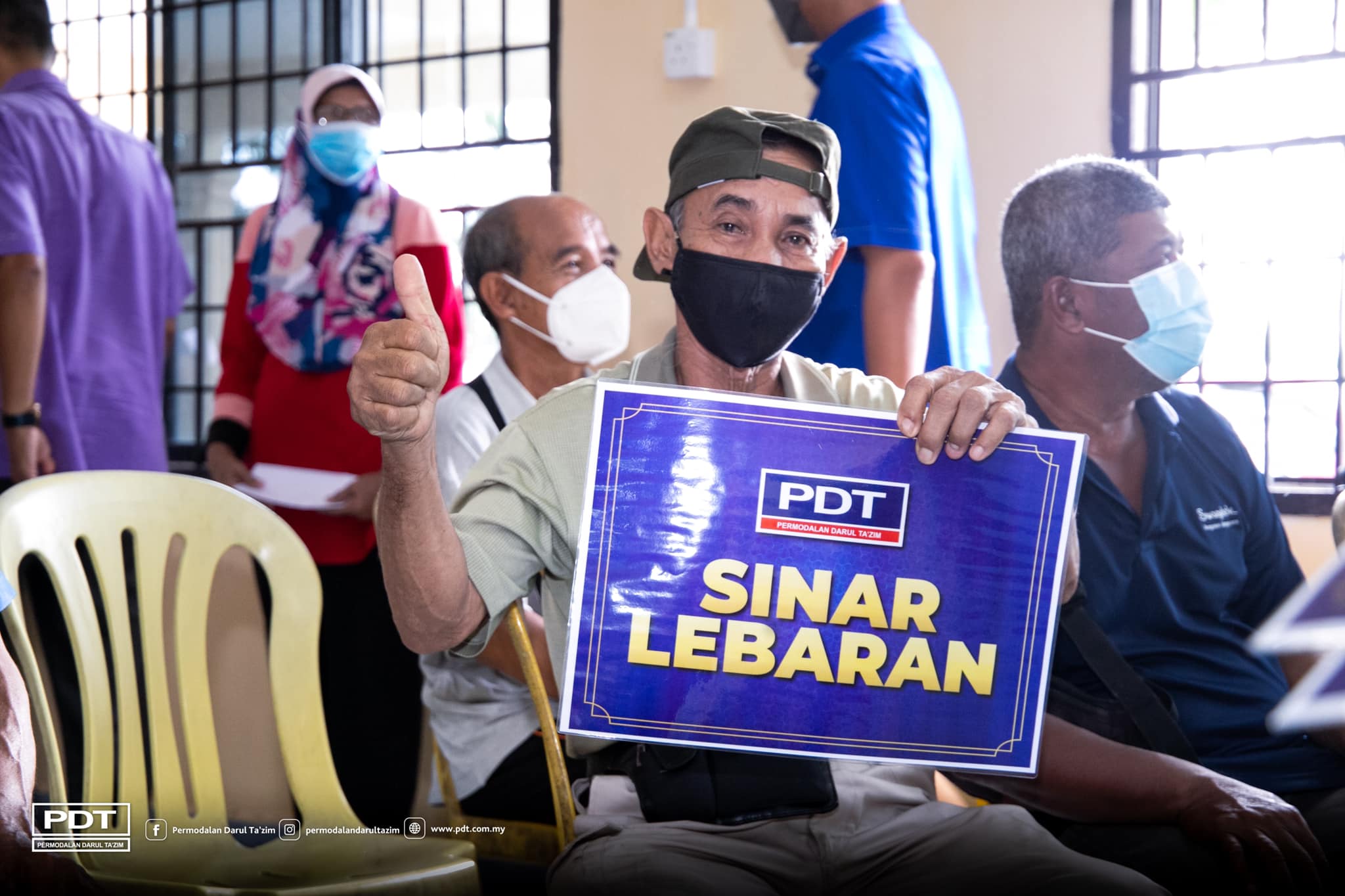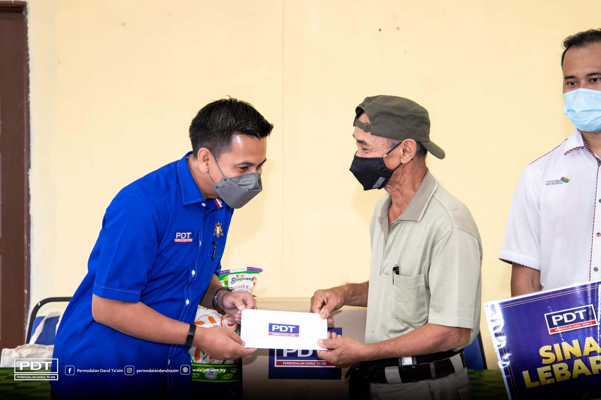 Permodalan Darul Ta’zim (PDT) menyampaikan sumbangan berbentuk barangan keperluan harian dan wang tunai kepada 50 penduduk di daerah Mersing menerusi program Sinar Lebaran PDT 2022.